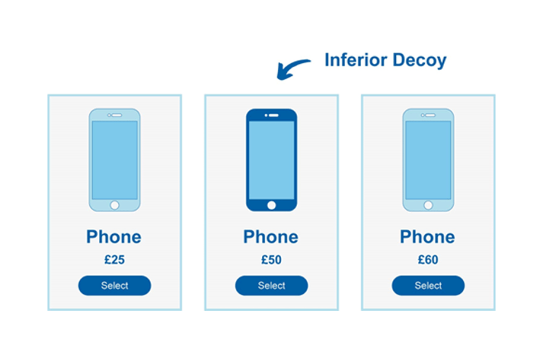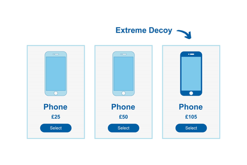 | Decoy Effect | When faced with a choice between 2 alternatives, the addition of a third, less appealing option may influence the perception of the original 2 choices |
