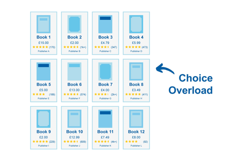 | Choice Overload | Depicts how people tend to get overwhelmed when presented with many options to choose from |