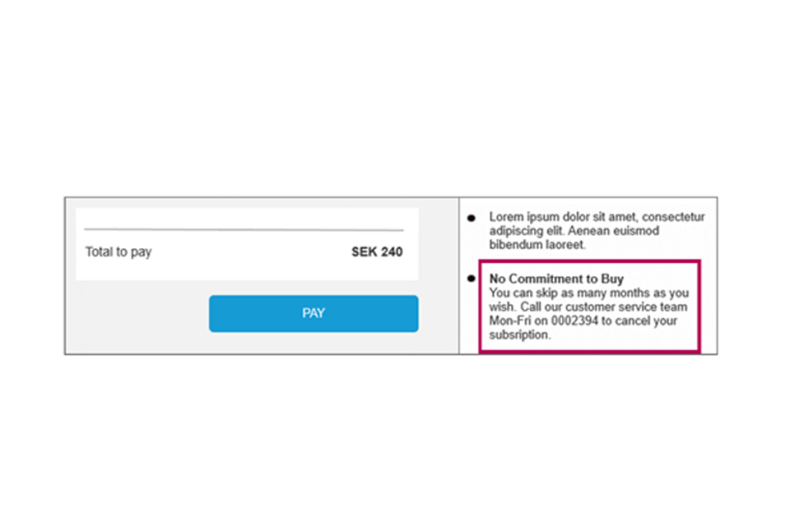 Sludge is excessive or unjustified friction that makes it difficult for consumers to get what they want or to do as they wish (Sunstein, 2020). This could include, for example, requiring customers to telephone a premium rate number to cancel a subscription or hiding important information about a product in the terms and conditions. It is important to note that not all friction is sludge. Friction can be helpful and may be deployed by policymakers to slow down thinking in high-stakes decisions where mistakes are common, or even by conscientious businesses who care about consumers making properly informed choices. For example, gambling rules often require consumers to go through a waiting period before attendance after signing up at a casino, or impose additional financial limits of the maximum amount that can be deposited into a temporary account to discourage impulse gambling at vulnerable moments (Carran, 2018).