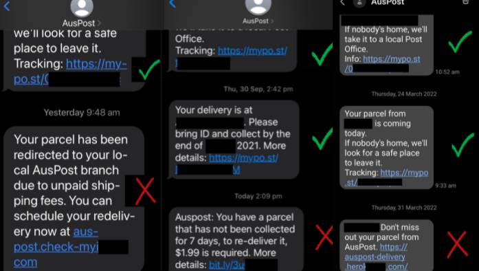 - These scam messages are sent using ‘AusPost’ sender ID and, due to the way smart phones group these communications, the scam text would appear together with the legitimate thread of Australia Post messages.