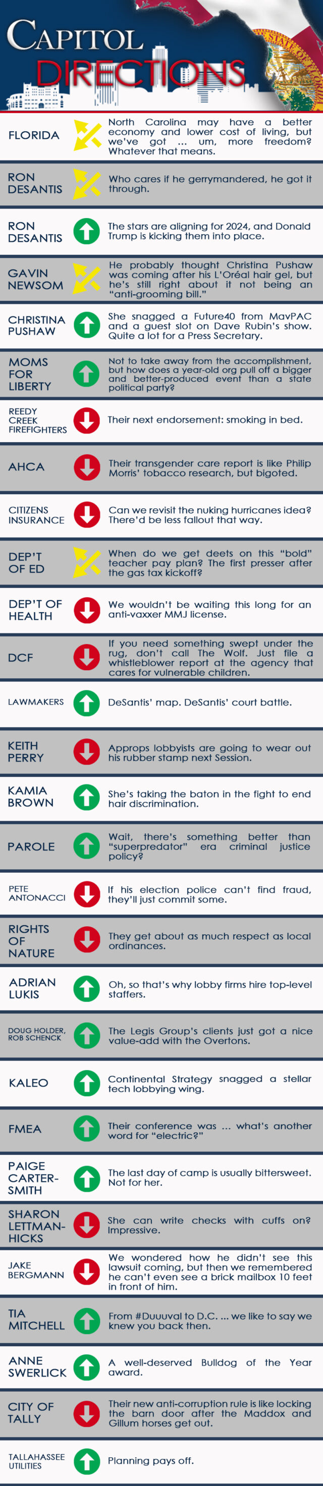Coming up, the usual assortment of news, intel and observations from the week that was in Florida’s capital city by Peter Schorsch, Drew Wilson, Renzo Downey, Aimee Sachs, Christine Jordan Sexton and the staff of Florida Politics.