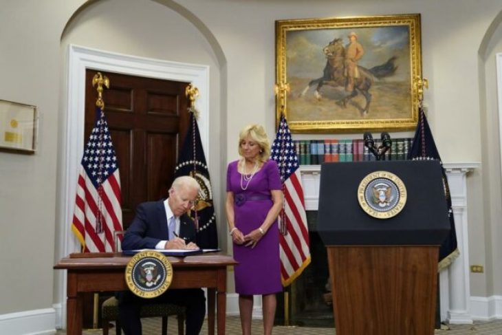 Joe Biden signs the Bipartisan Safer Communities Act. Image via AP.